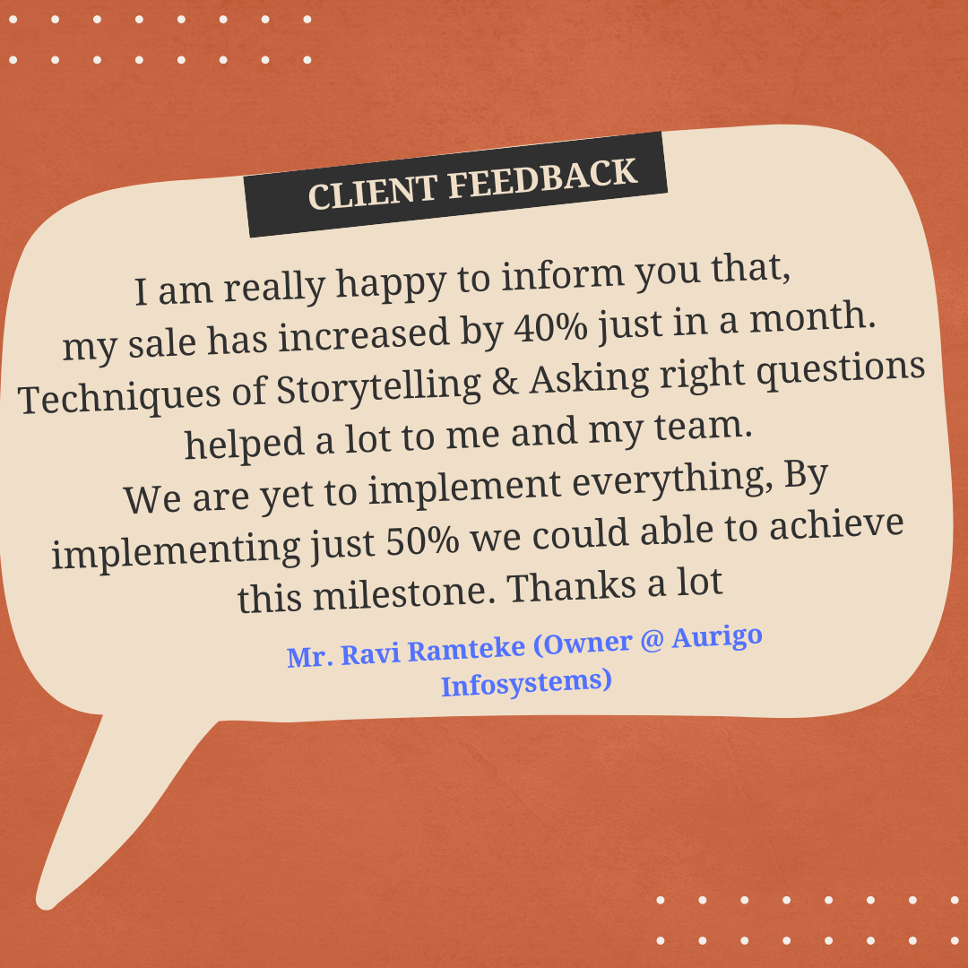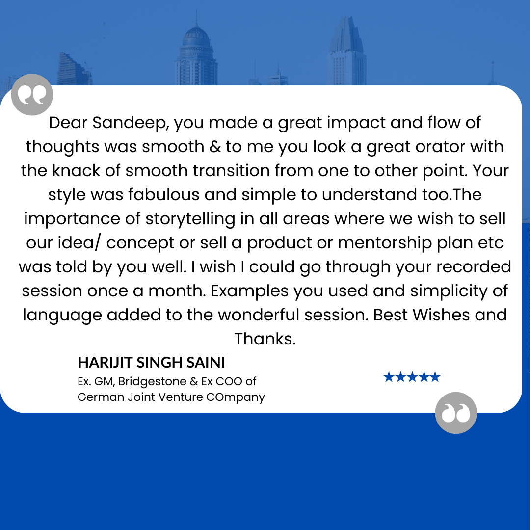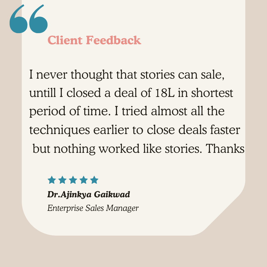 I am Sandeep, founder of "Sell Through Stories".I am on mission to empower 1M sales professionals through the art of "Sales Storytelling" & guiding them to 2X lead conversions & exceed targets with no extra efforts.